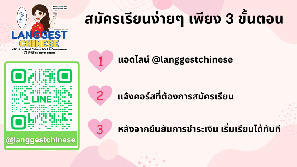 สนใจสมัครเรียนภาษาจีน ติวจีน HSK, A Levelจีน Add Line: @langgestchinese
